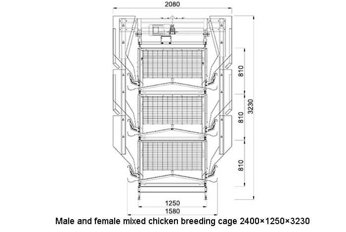 The mixed-breeding chicken cage is a chicken cage used to raise natural breeding flocks. The roosters and hens are mixed according to a certain proportion and quantity. The male-female mixed breeding cage is designed with a large-sized square cage, which is convenient for the natural mating of breeder chicken.